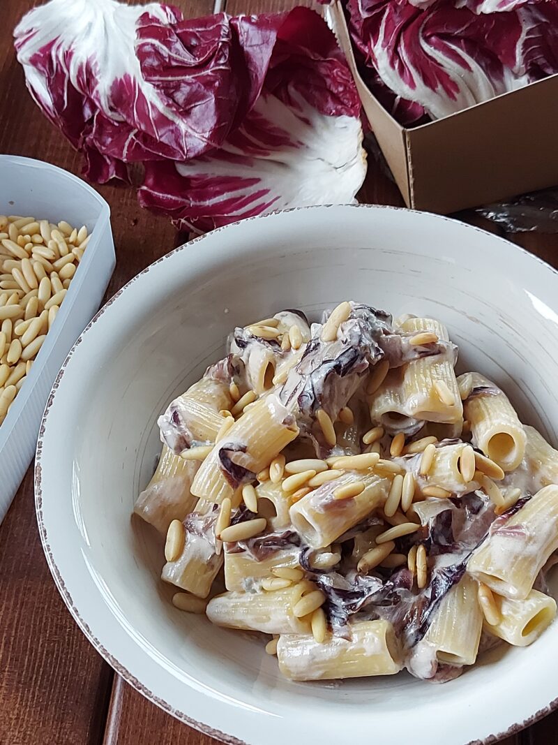 Największym problemem z radicchio nie jest wymowa, a rozmiar. Bo w Polsce nie da się kupić naprawdę małego radicchio. Byłam tym faktem bardzo przygnębiona, bo makaron z radicchio i gorgo jest naszą ulubioną pastą zimową, dopóki nie odkryłam, że podsmażone radicchio doskonale znosi zamrażanie! Teraz po prostu wyciągam w zamrażarki odłożoną porcję, podgrzewam, mieszam z sosem serowym i już!