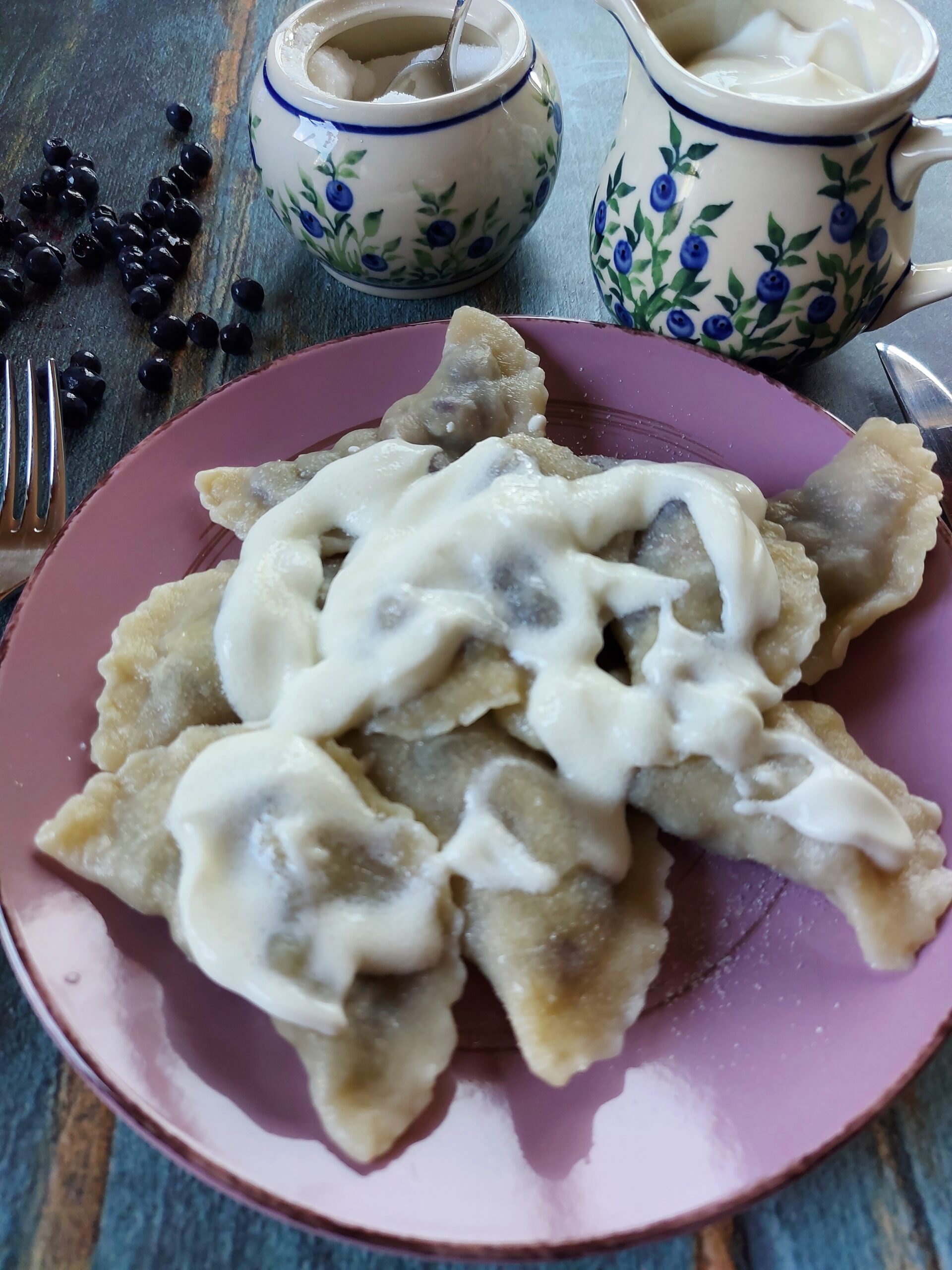 Wiem, że tu powinno być zdjęcie serwisu w jagódki, ale nie zdążyłam go wyjąć z kredensu, zanim mi te pierogi zeżarli…