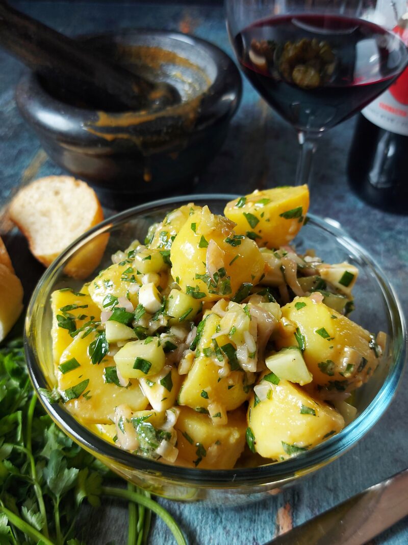 *Jeśli używasz małych ziemniaczków sałatkowych (żółtych, białych lub czerwonych) możesz je ugotować i zjeść ze skórką.