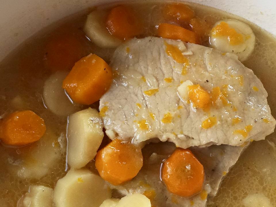 Nie jestem pewna, czy to jest przepis, czy tylko pomysł. Duszony na patelni schab z warzywami robiła moja Babcia Helena, a potem Tatui (czyli tytułowy Lonek). Danie jest proste, tanie i – jak się niespodziewanie okazało – niezwykle przypadło do gustu moim synom.