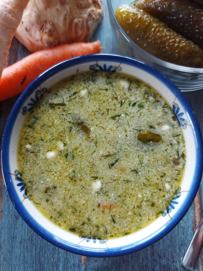 - kiszone ogórki (gotowe do zupy albo całe do starcia na tarce)
