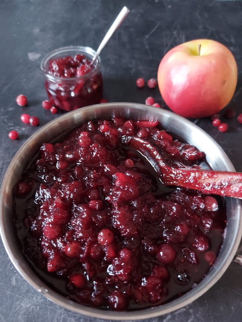 Żurawina (lub borówki) własnej produkcji mają tę niewątpliwą przewagę nad najlepszymi kupnymi, że sami decydujemy, jaką mają mieć konsystencję. Jeśli wolimy płynniejszą – gotujemy krócej. Jeśli bardziej odpowiada nam gęsta konfitura – zostawiamy na ogniu nieco dłużej.